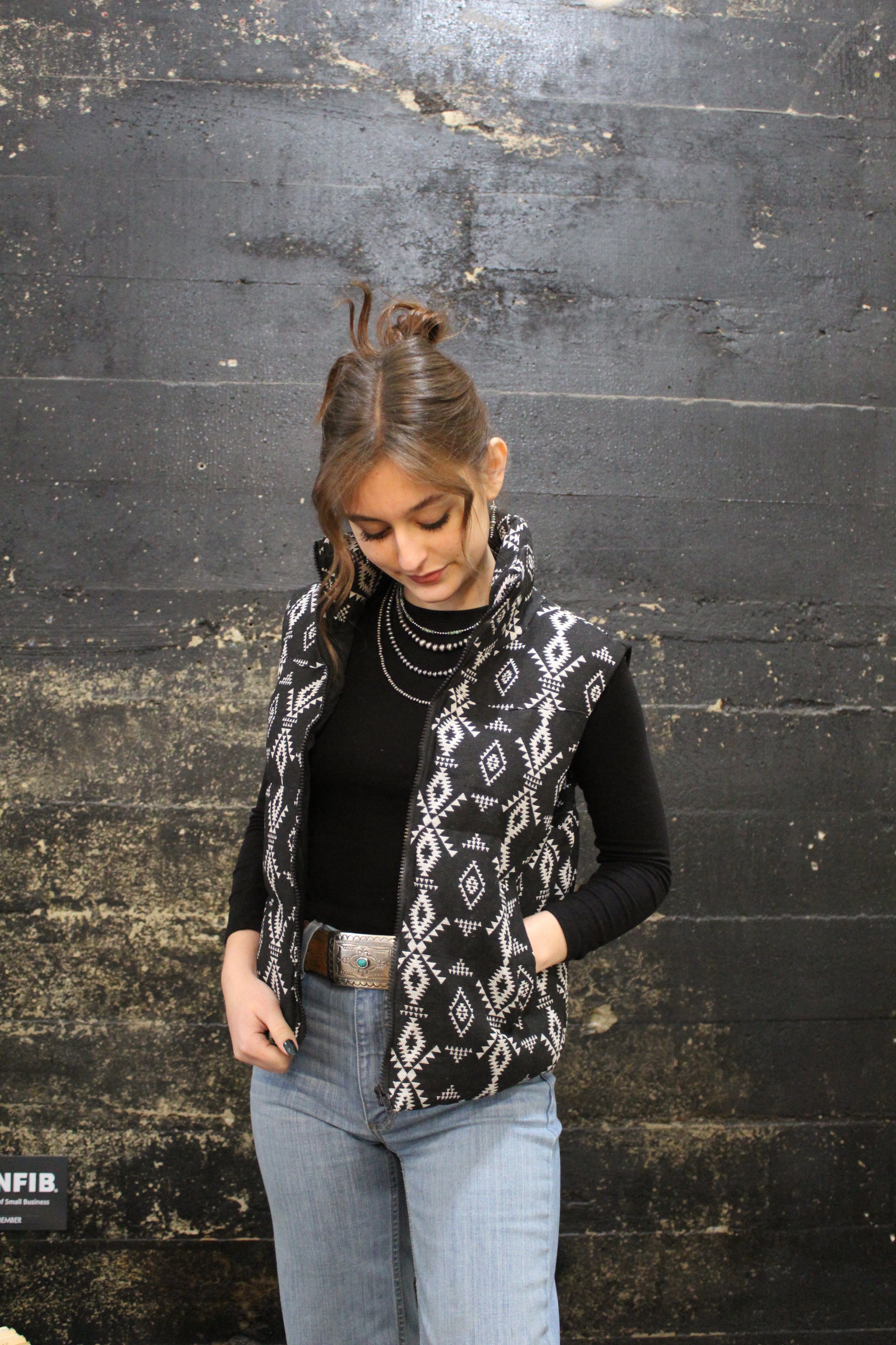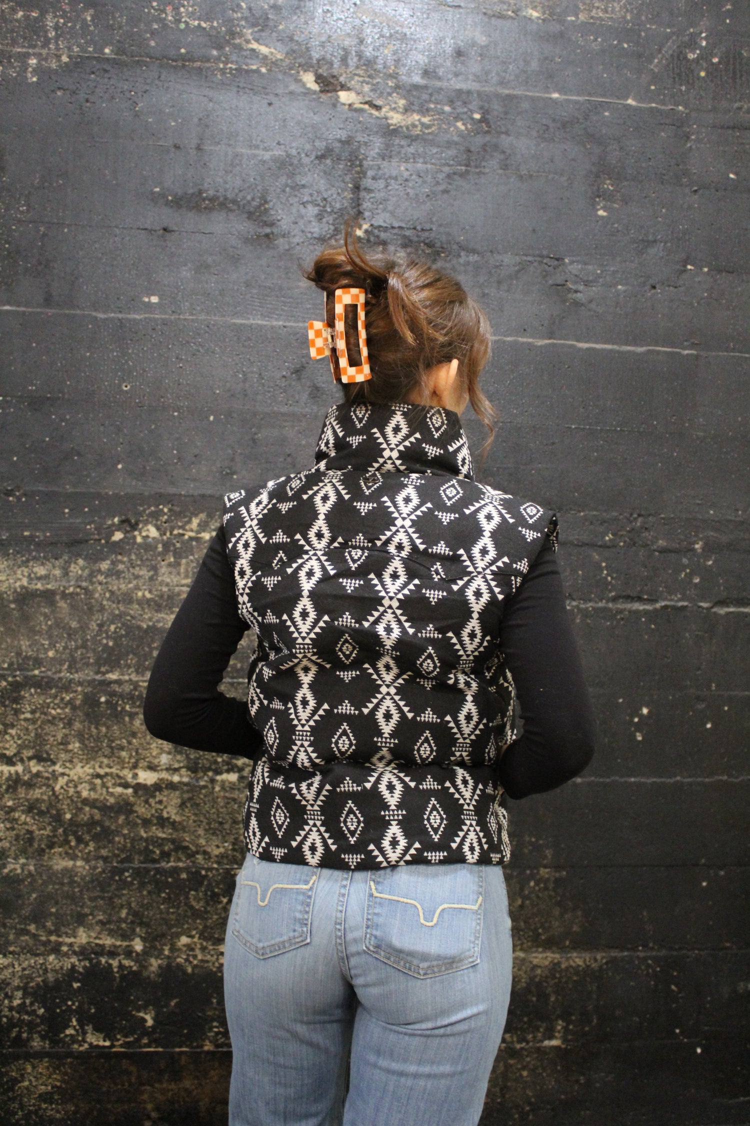 Black Aztec Woven Puffer Vest