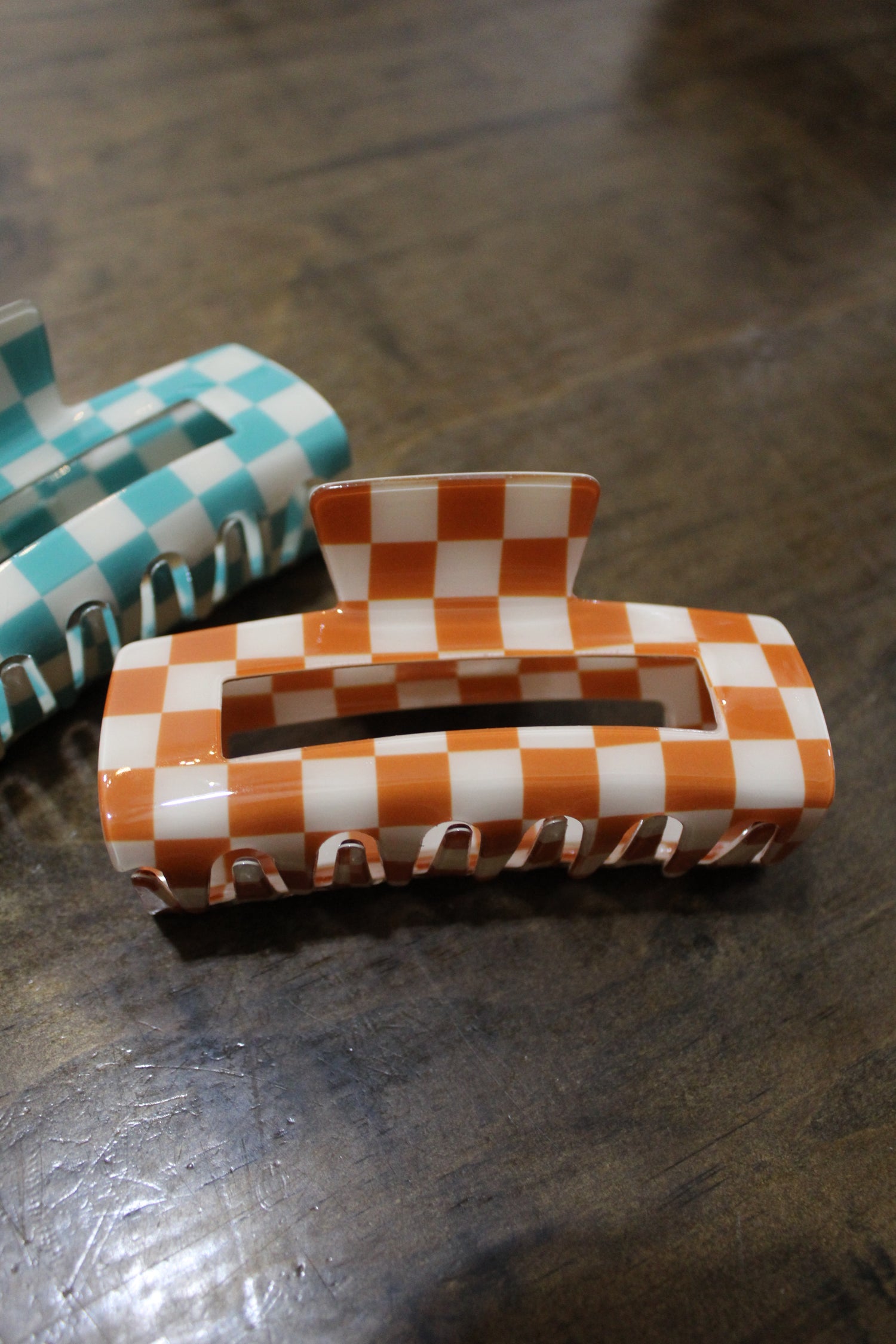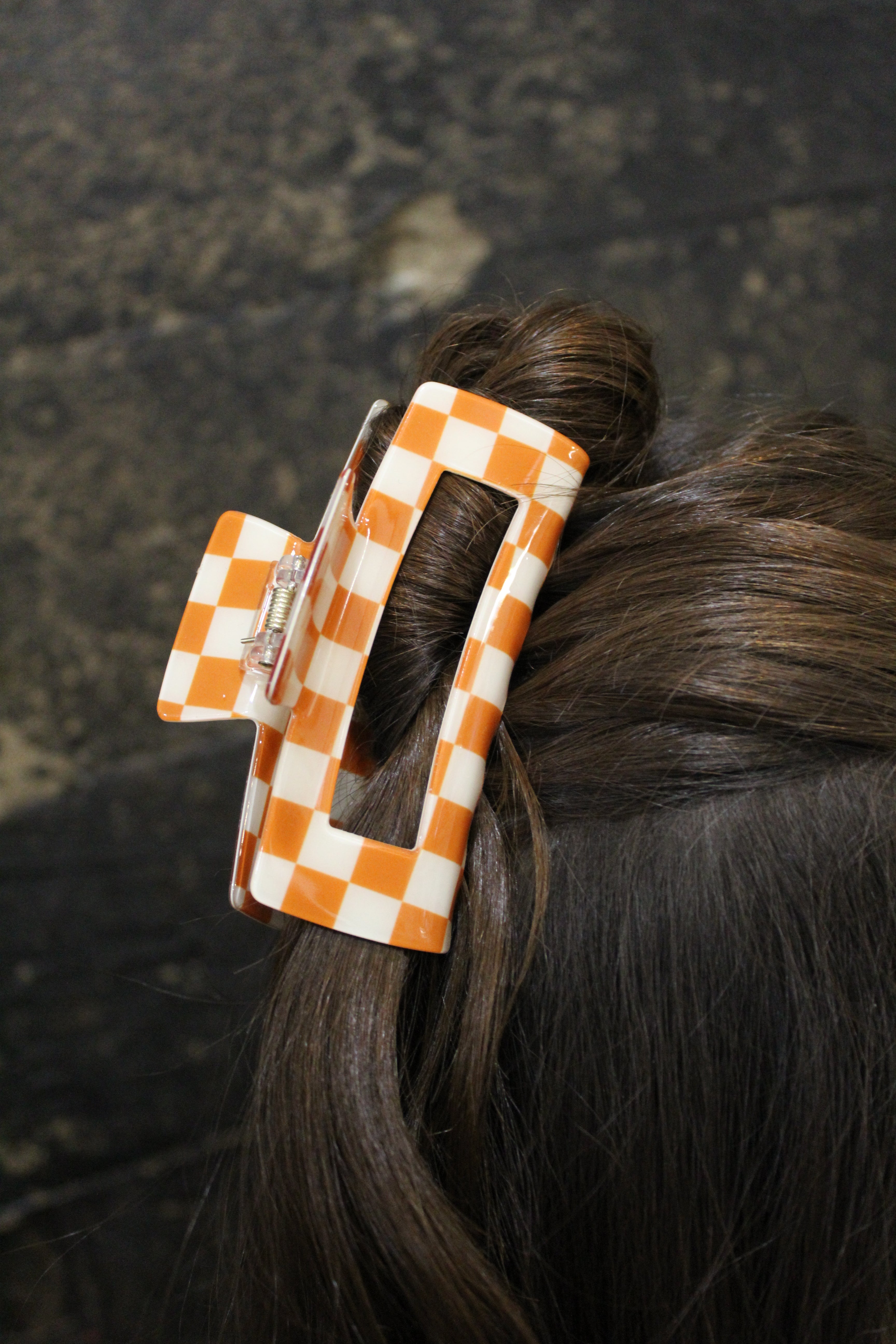 Checkered Claw Clip - Orange