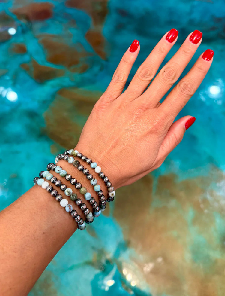 Sterling Silver & Larimar Bracelet – 6 mm Beads