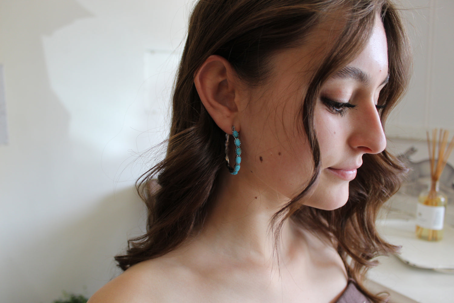 Turquoise + Orange Spiny Sterling Silver Hoops