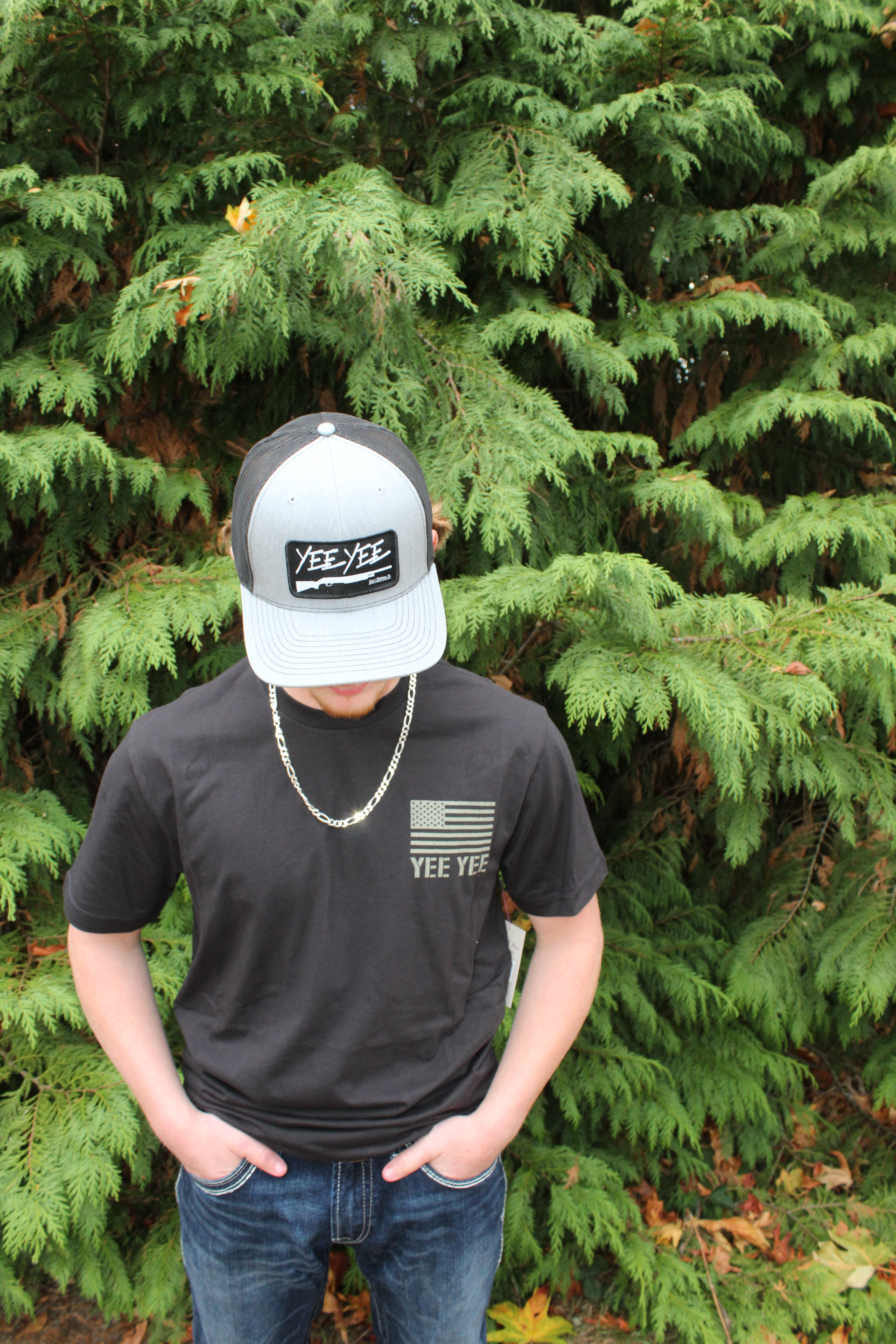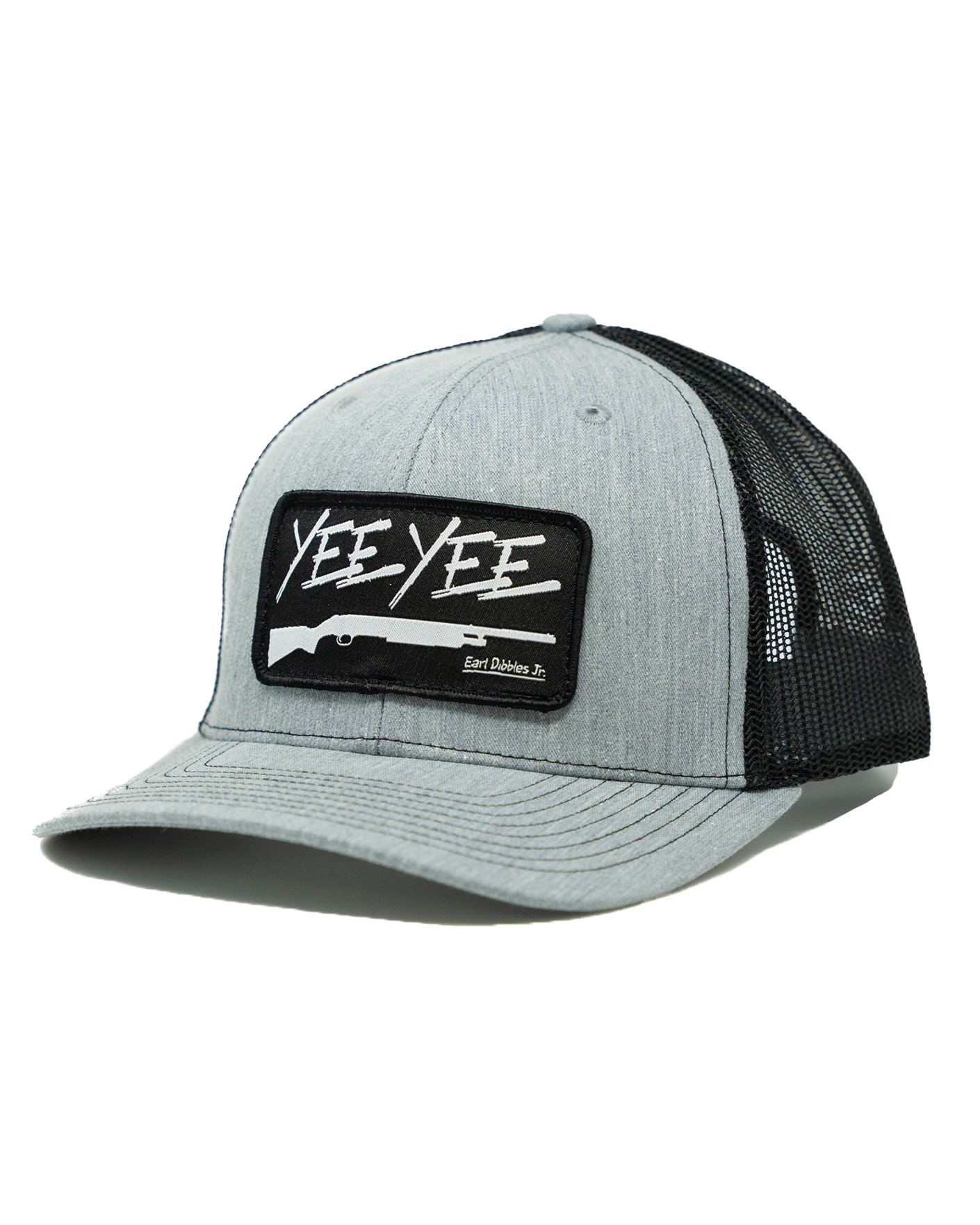One of our all-time best sellers. The six-panel, adjustable snapback includes the original Yee Yee patch on a grey cotton front and a breathable, black mesh backing.